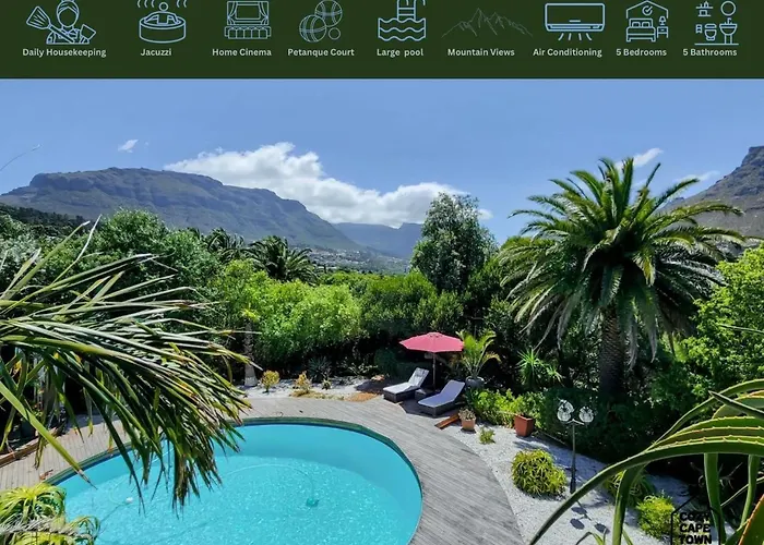 Die Muritai Spacious 5Br Villa With Cinema, Jacuzzi, Pool And Views Hout Bay bietet einen Jacuzzi und ist 7 km von Unterhaltungsstätten wie der Weinkellerei Groot Constantia.